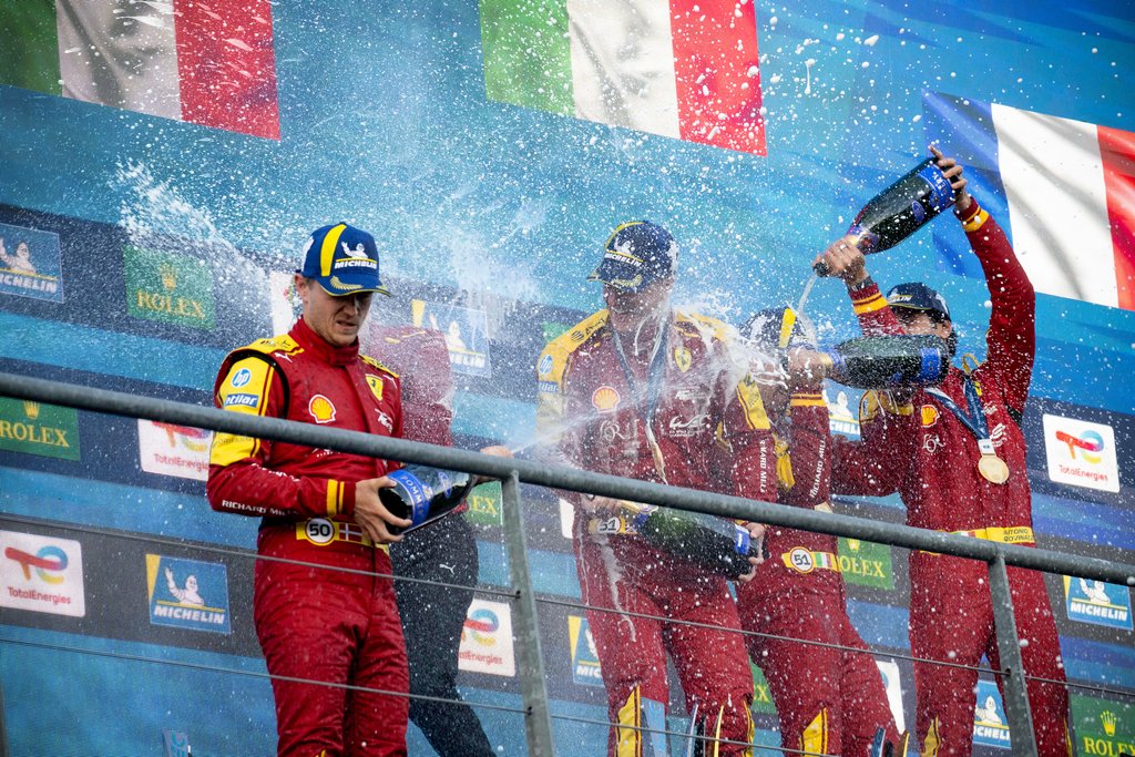 1-2-sejren for Ferrari betyder, at det italienske mærke indtil videre har vundet alle afdelinger af årets VM for sportsvogne og således dominerer mesterskaberne for både kørere og teams. Nielsen, Fuoco og Molina tog sejren i sæsonpremieren i Qatar i februar.