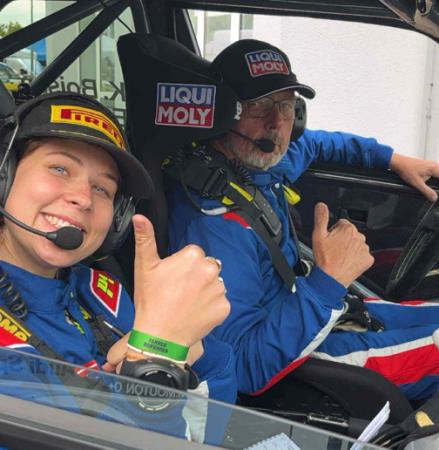 ”Under tredje prøve gik ledningen til anlægget i stykker i min fars hjelm, men hurtigt fandt han ud af at hvis man holdt rundt om stikket kunne han høre mig, så alt imens jeg skulle læse noter, sætte kryds og bladre i mine papir skulle jeg holde ledningen – udfordrende men også bare et perfekt eksempel på at man ikke ”bare” sidder ved siden af som codriver” – siger Emilie med et skævt smil