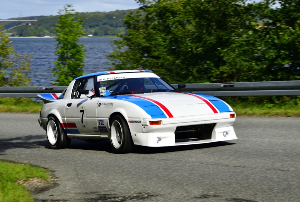 Lokalmatador og outsider: Erik Pedersen fra Børkop har hastigheden til at vinde Munkebjerg Hill Climb i sin Mazda RX-7. (Foto: Michael Eisenberg)